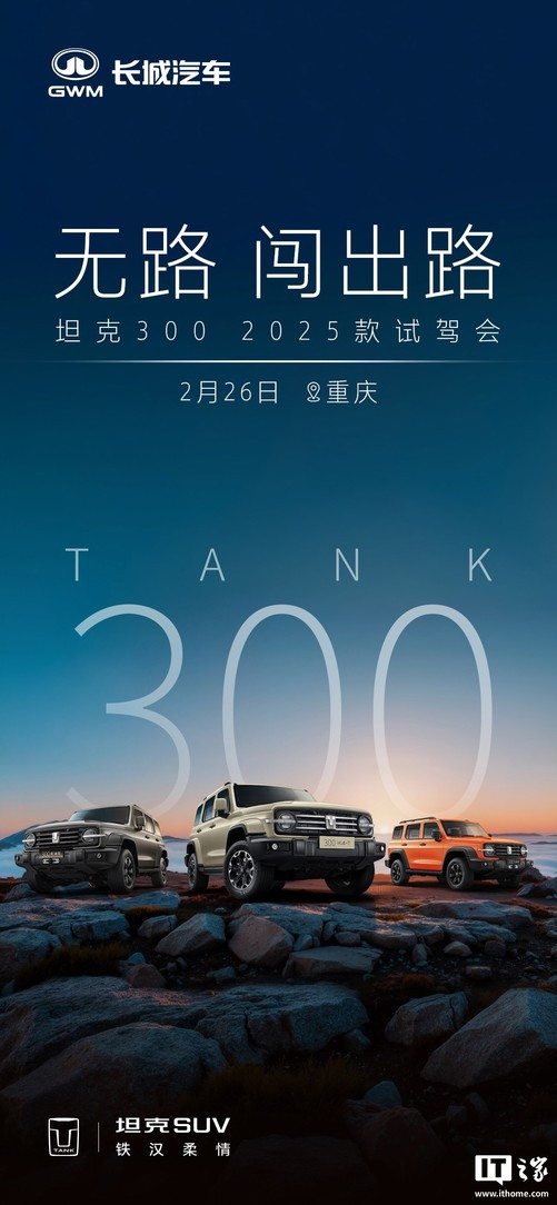2月25日,长城汽车正式发布了2025款坦克300越野车的官方图片。新车将于次日正式亮相,将提供汽油、柴油以及Hi4-T插电混合动力三种动力配置。与现款车型相比,此次改款主要针对内饰进行了优化调整,而外观设计则保持不变。